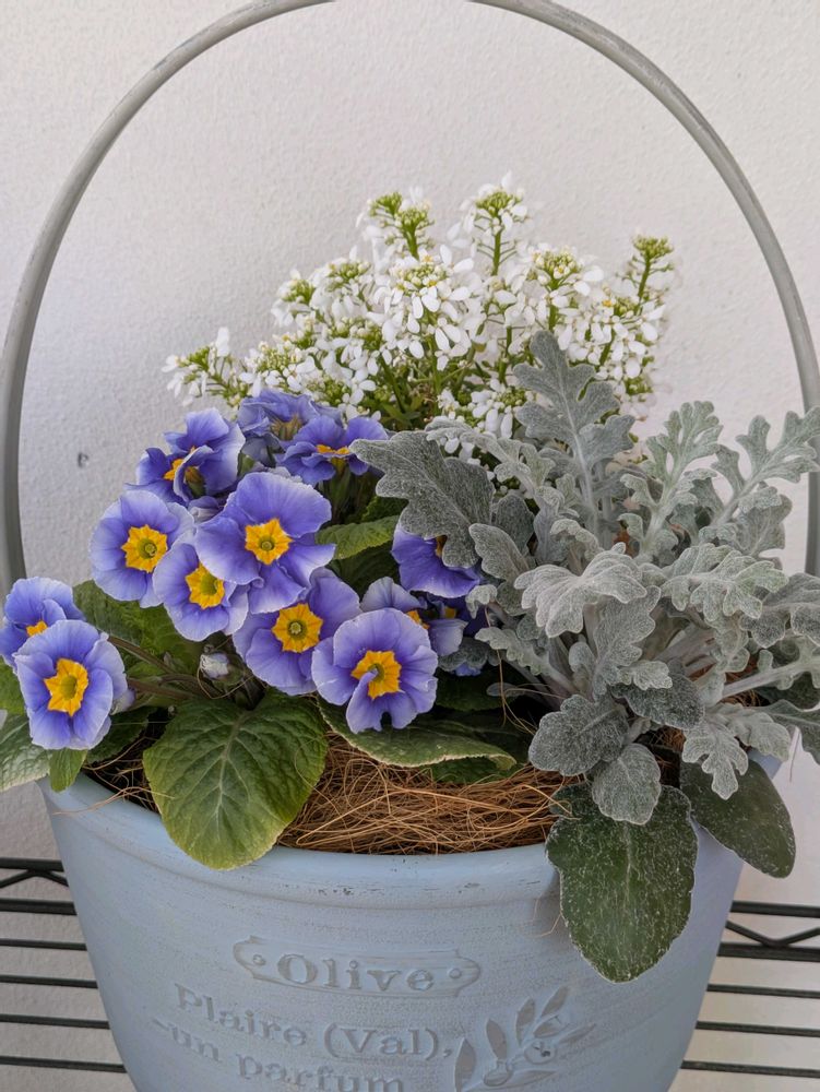 1月に作ったプリムラ イベリス シロタエギクの寄せ植え💙🤍💚