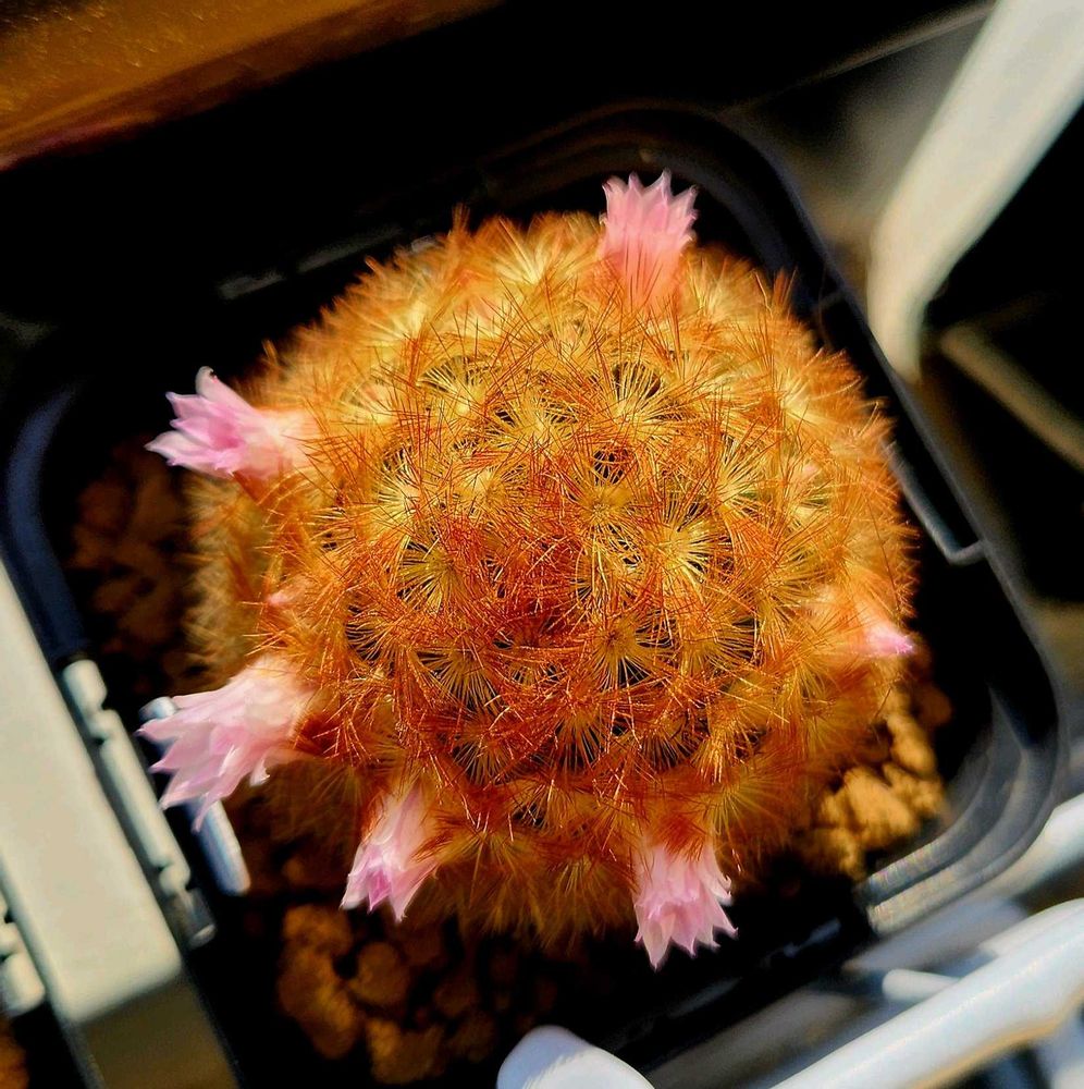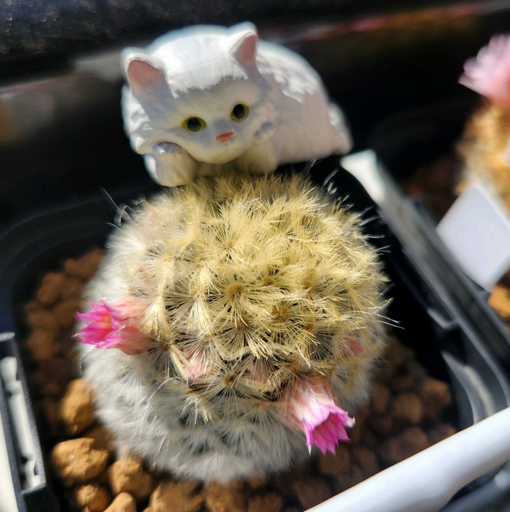 ふわふわの赤刺からのピンクのお花🌸可愛いよね〜🥰
