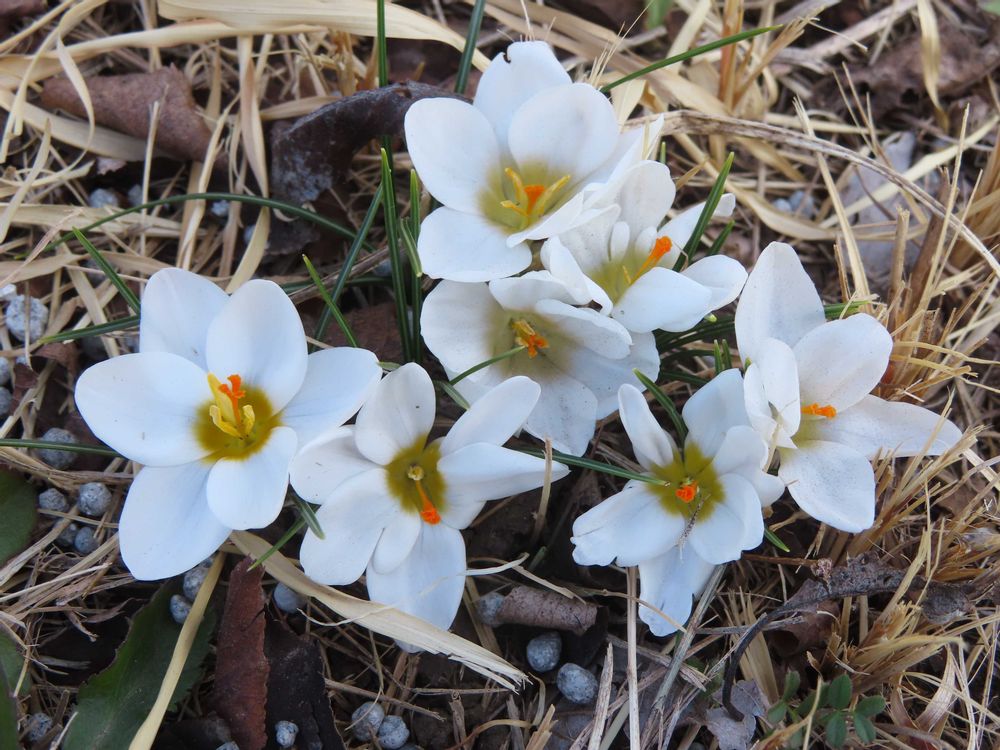 刈り上げられた草むらに白いお花が。「クロッカス」が咲いていました。 パチリ
