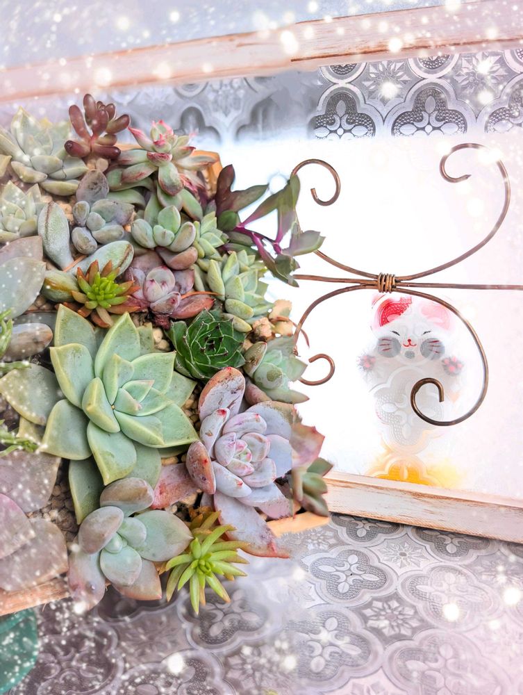 2️⃣誰かが多肉の寄せ植えを覗いているよ👀