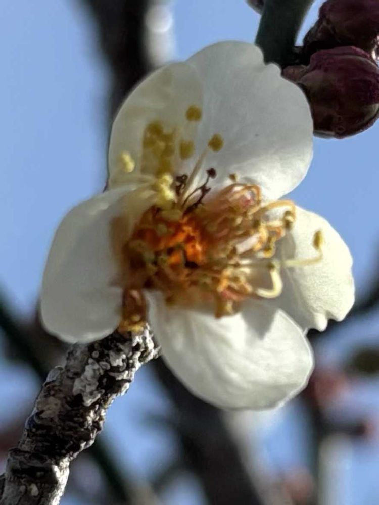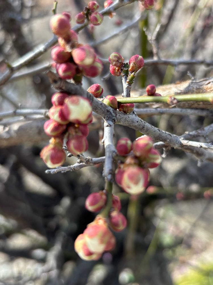①②③梅の花も蕾が膨らんできて、やっと2、3個花を見つけました〜