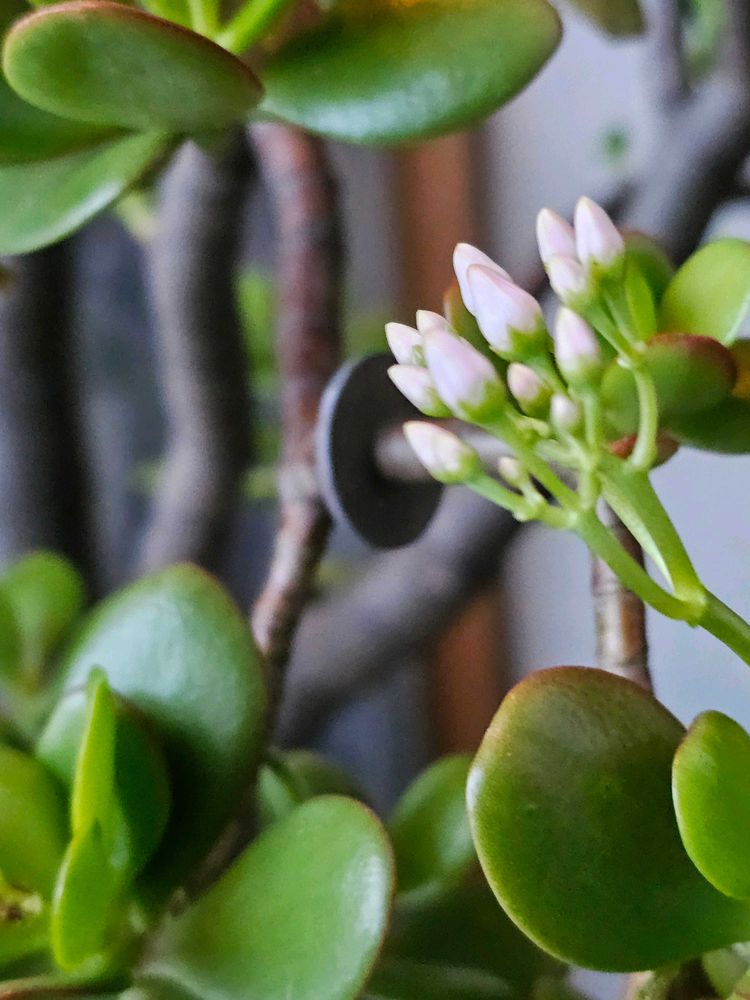 (何年か前に新芽に5円玉の穴を通しておき、そのまま成長させました。)