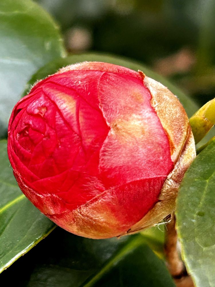 団地の中のちょっとした公園には色んな樹木が植えられていて、宝石のような椿の花を見つけました🌺