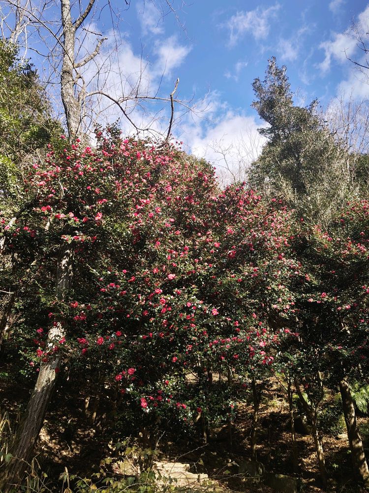 いちごさんのサザンカ,サザンカ,杉の木の投稿画像