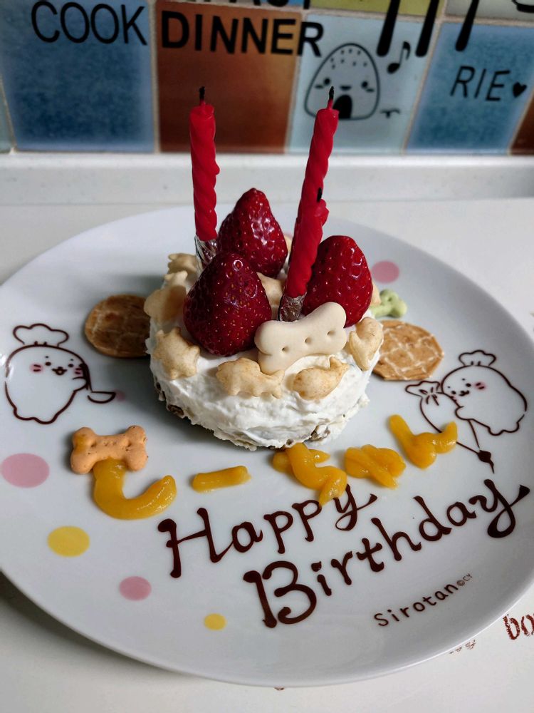 昨日は、愛犬シェリーの誕生日🎂🎊🎉💐🎁Birthdayケーキ🍰は、ちょっと贅沢に、シェリー大好物のイチゴ🍓🍓🍓3つ😄🎶