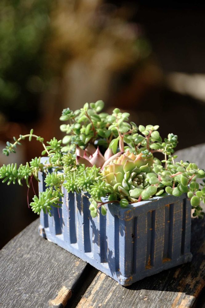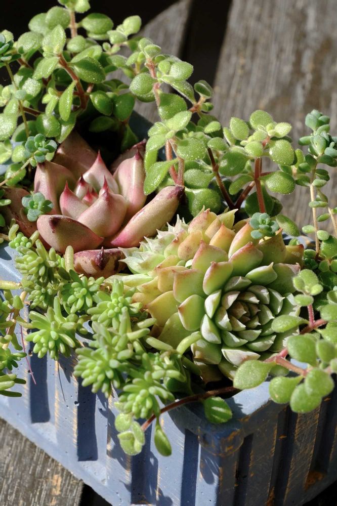 セダムが好き放題に育って、元気いっぱいの寄せ植えになりました。