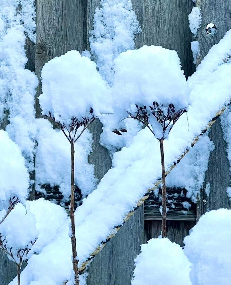 pic③地植えの紫陽花にも綿帽子みたいに雪がまぁるく積もりました😊