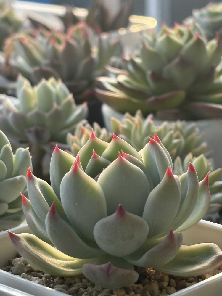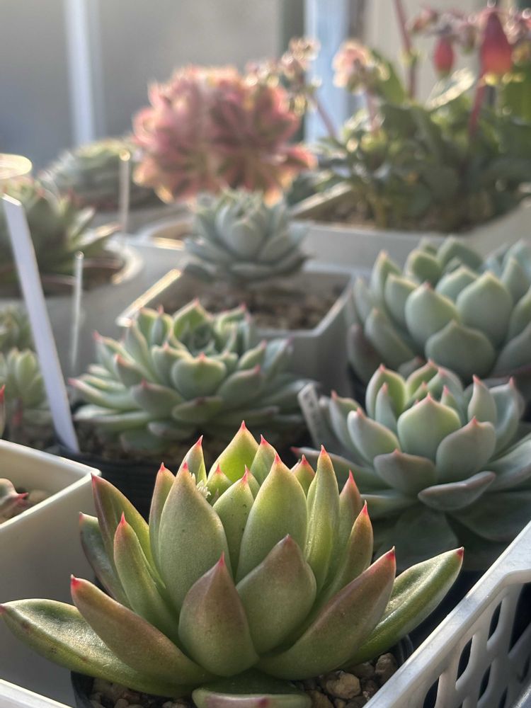 多肉さんたちにあたっている日差しがほんとに柔らかく感じて☺️