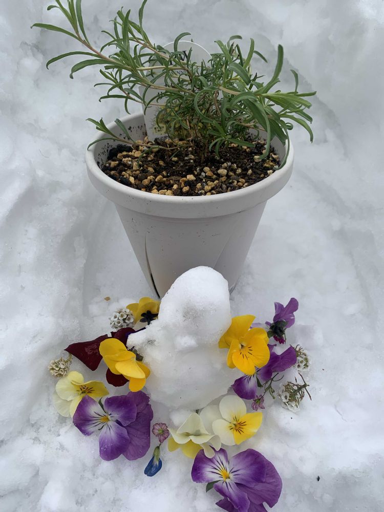 除雪した雪で花台をつくってみました