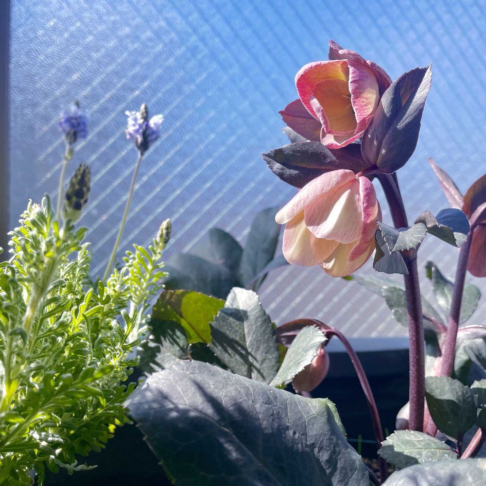 クリスマスローズとラベンダーが咲いています。