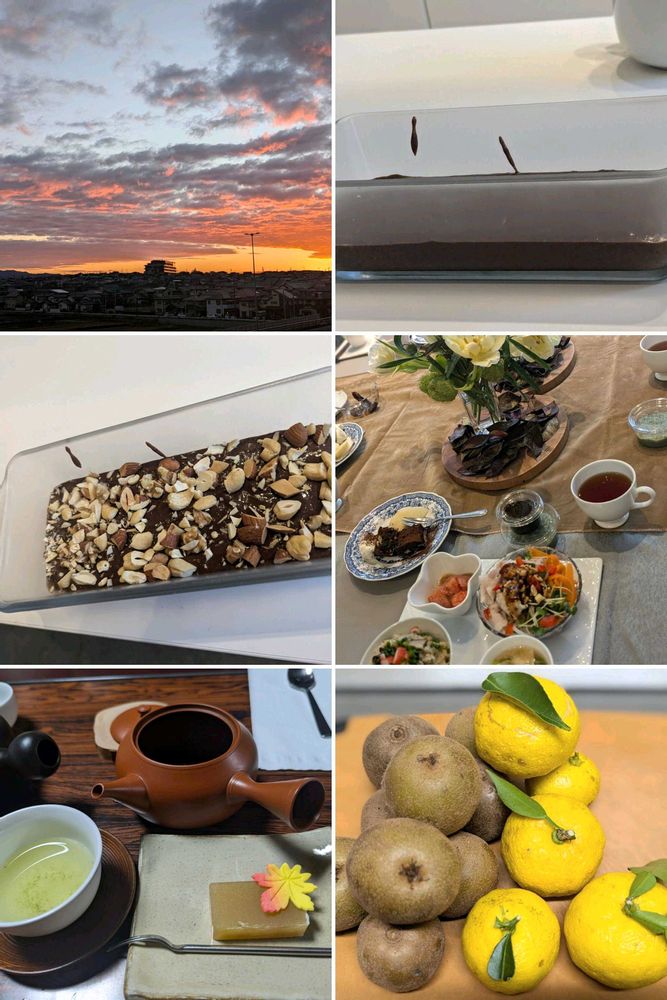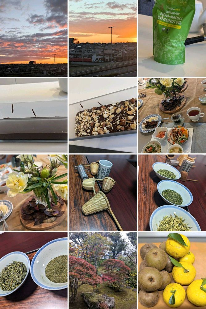 Googleフォトが「ある日のスポットライト」と題してコラージュしてくれました🍀😊✨2024年11月26日🧑🍳午前中に、中華麹レッスンを受講して、お花が飾っていました~♬♬午後から🍁喜楽亭でおいしい日本茶🍵の講座を受講しました( ^^) _旦~~自家製のユズとキウィを頂きました🥝🌄朝焼け🌿田園風景🚃(*˘︶˘*).。.:*♡ •*¨*•.¸¸☆*・゚