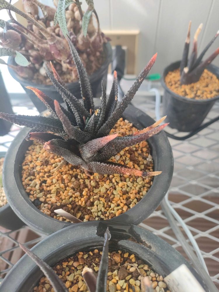 ハオルチアは「冬はほぼ断水」くらいで管理するのがセオリーだけれど、この株たちは推定水不足で弱ってしまったらしい…だからあんまり水少なくても余計に乾いちゃうなあ…など毎回悩みながら水を与えています。
