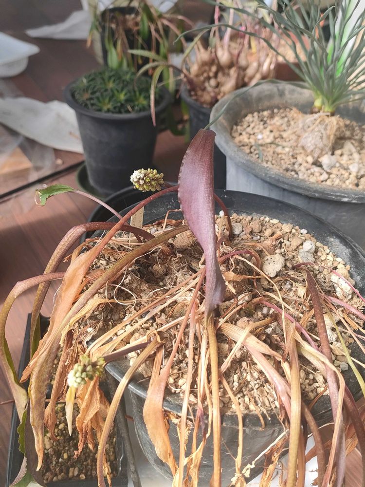 ほとんど休眠してる中で2株だけ元気なので置き場も水も判断が難しい😂