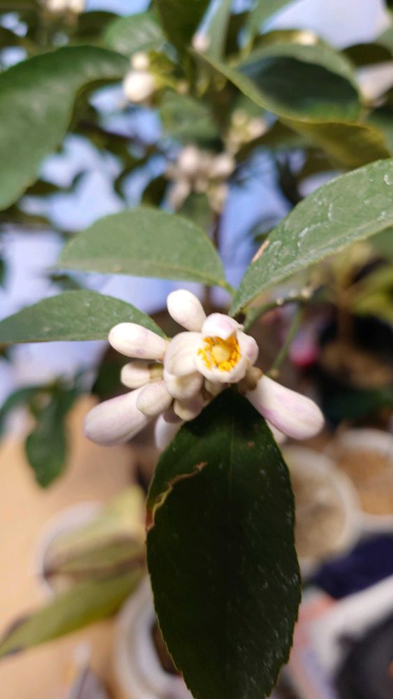 息子が自分の木だと言って買ってきたマイヤーレモンの木。樹と鉢を買ってきて「お母さん、後はよろしく」と言われ、鉢に植えた樹。