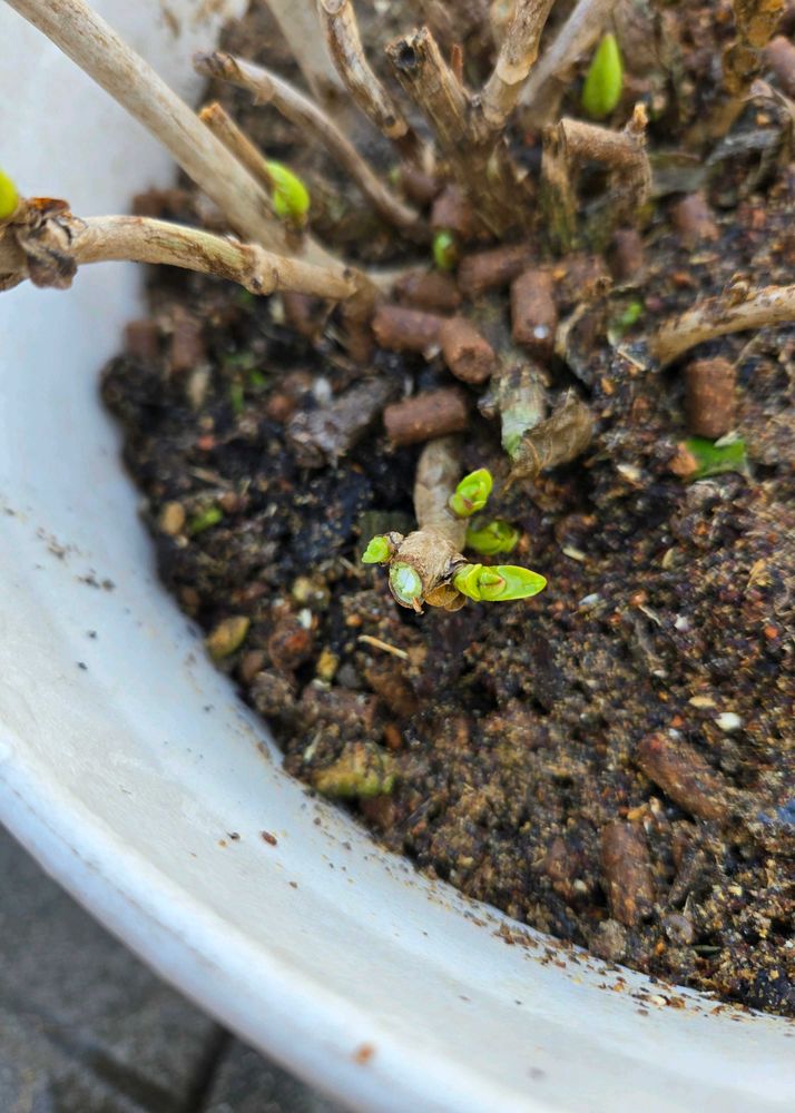 初夏に花後の花をカットはしたけど、そのまま放っておいたら、枯葉が気になったので、✂チョンパしていたら、新芽が沢山見えましたので、新芽の上でカットしてみました。