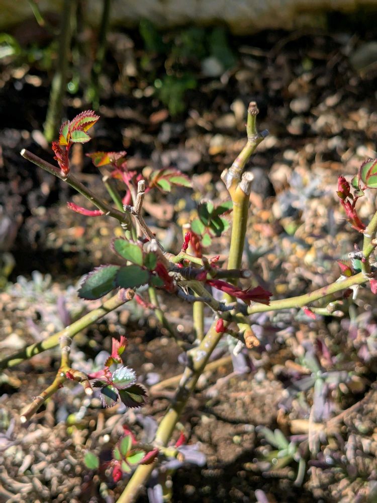 ③毎年の事ですが 冬剪定をした順番なのかも知れませんが「モカ」は早くも葉が沢山出てきました