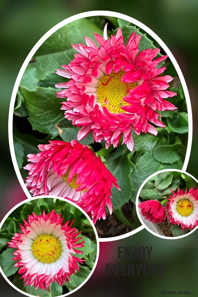 少し大きなデージー、中心が黄色、外側は濃いピンク、開くと根本が白い豪華な花です❣️