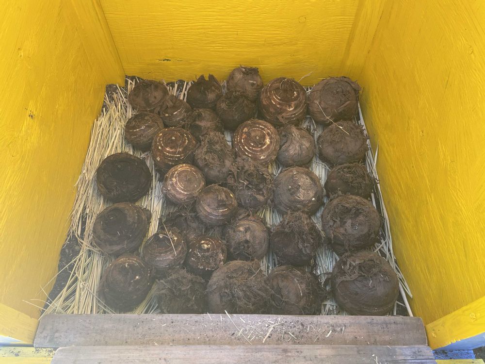 一昨年栽培した根芋!去年、収穫終えた里芋の親株を土中に藁で覆って保管、昨日掘り返して植え付けしました!八百屋さんでは滅多に売っていない根芋、味噌汁は絶品です😆