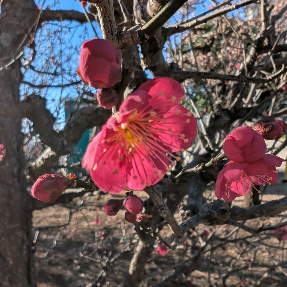 紅梅「ベニチドリ」が段々と咲いてきました。