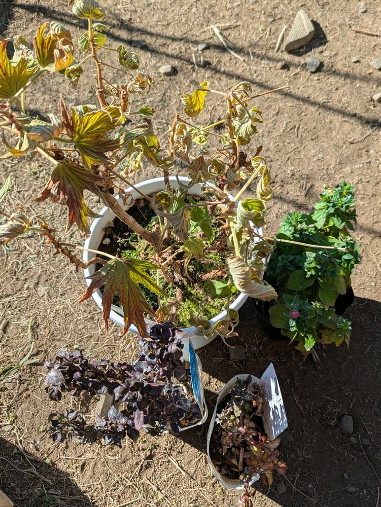 いつものお花屋さんは、変化なく大鉢の、スーパーレモンゼラニウムを、1つなら百円なので、それを買い、ジョイフルホンダで、モフモフネメシアと変わった色のコプロスマを、買いました。これでワンコインになりました。