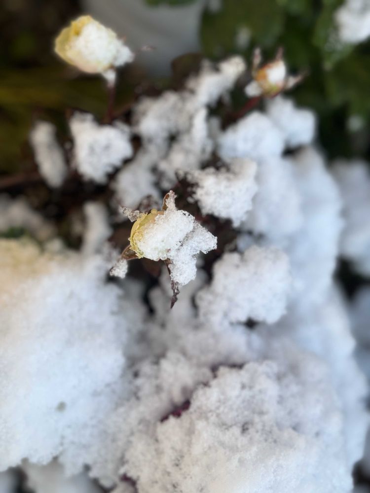 ④ミニバラとハボタンが同居してるプランターに雪が1番積もってました❄️