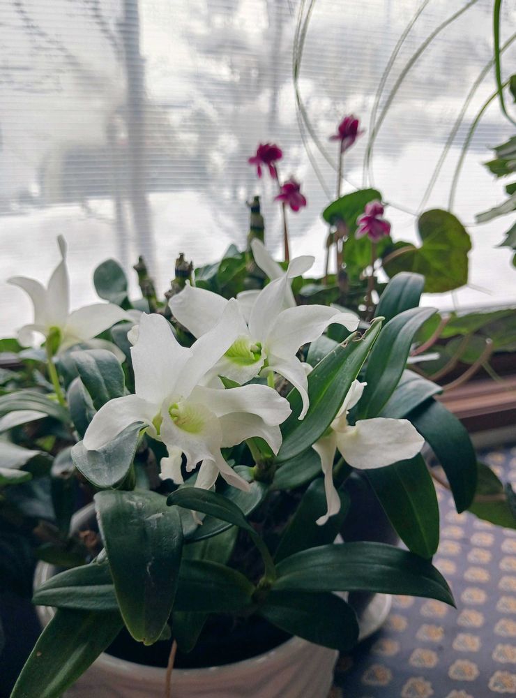 デンドロビウム エンジェルベイビー‘グリーン愛’,八重咲きミニシクラメン‘フェアリーピコ’,花のある暮らしの投稿画像