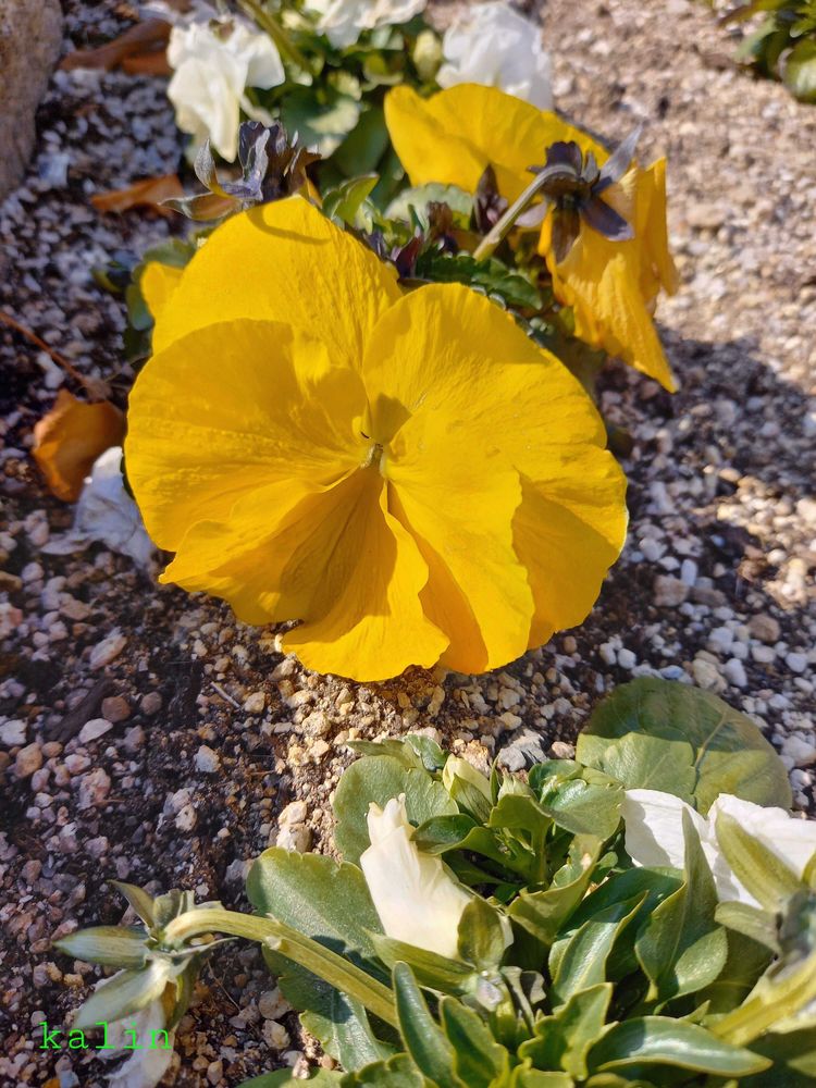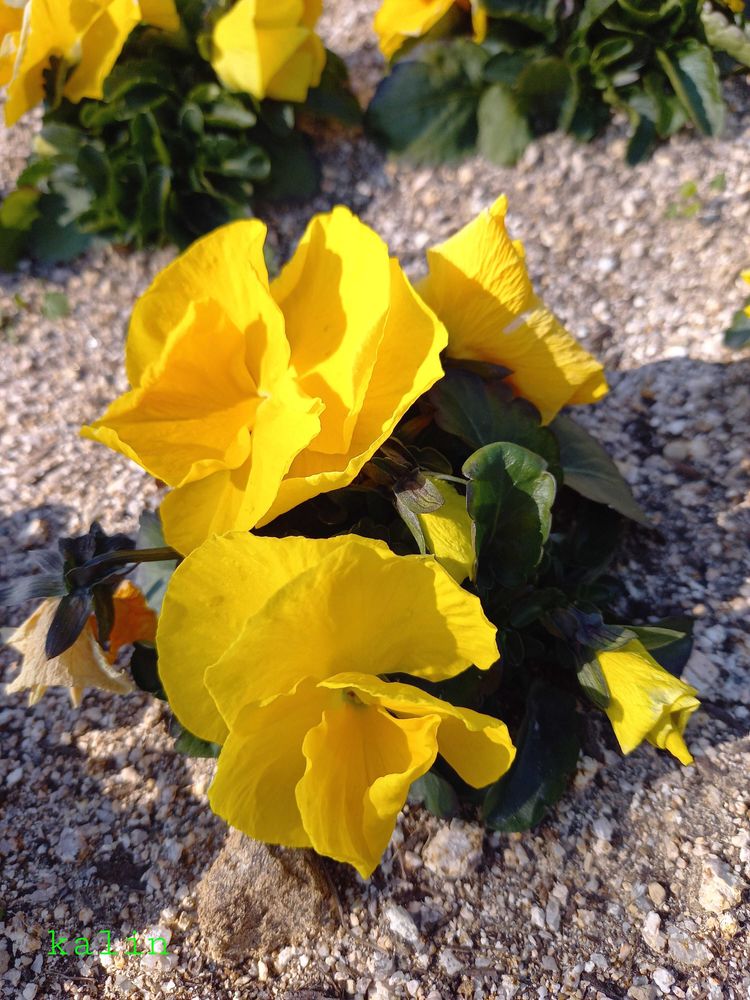 パンジーは寒いなかを咲いていました。黄色💛のお花は元気をもらえますね。