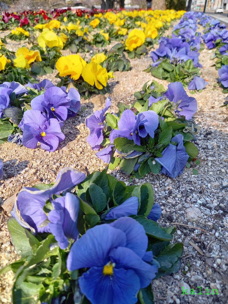 お出かけ先では、可愛いパンジーのお花達に出会えて良かったですねー✨🎶🌼💜🌼💜🌿