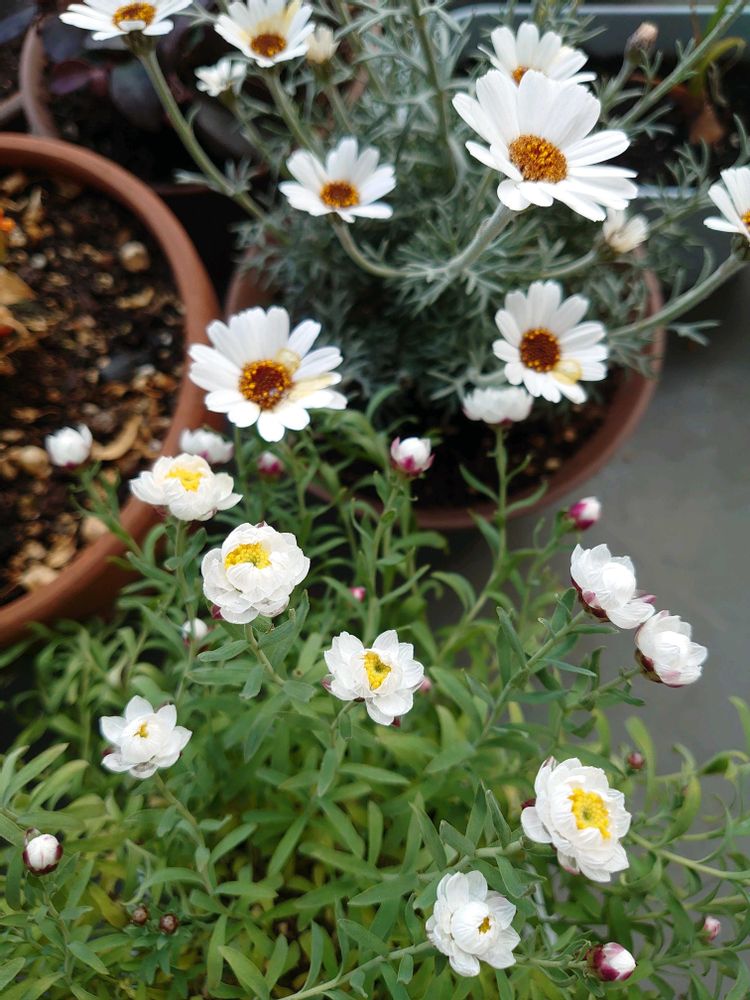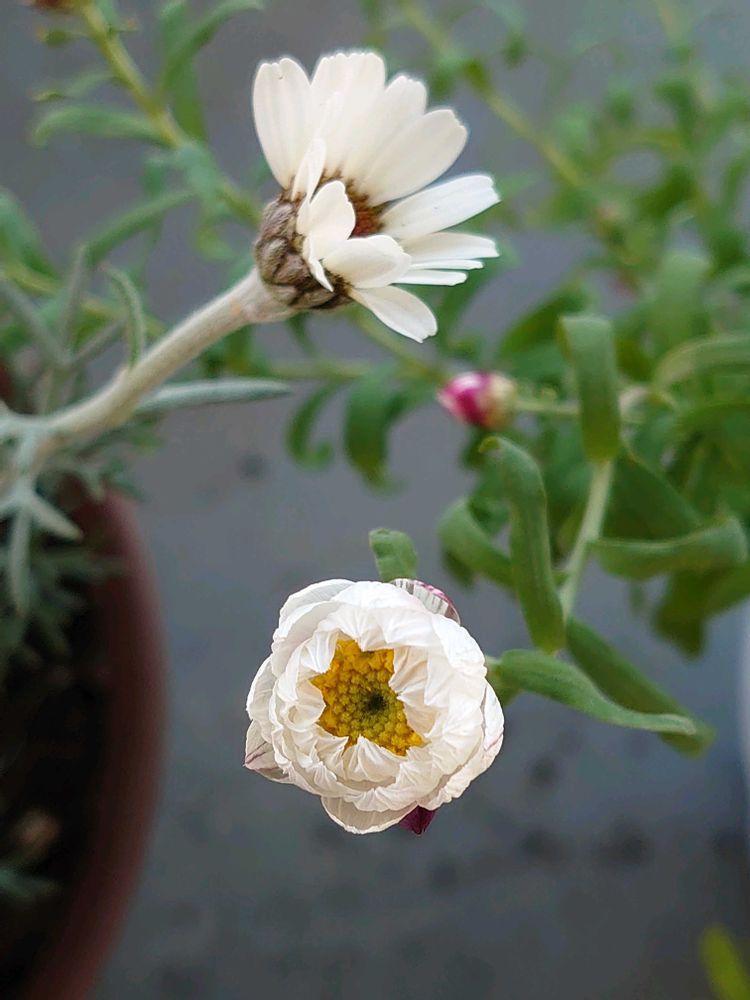 2️⃣〜5️⃣花かんざしと一緒にお迎えしたローダンセマム・アフリカンアイズ🤍🌼仲良く並んで咲いています😊💕