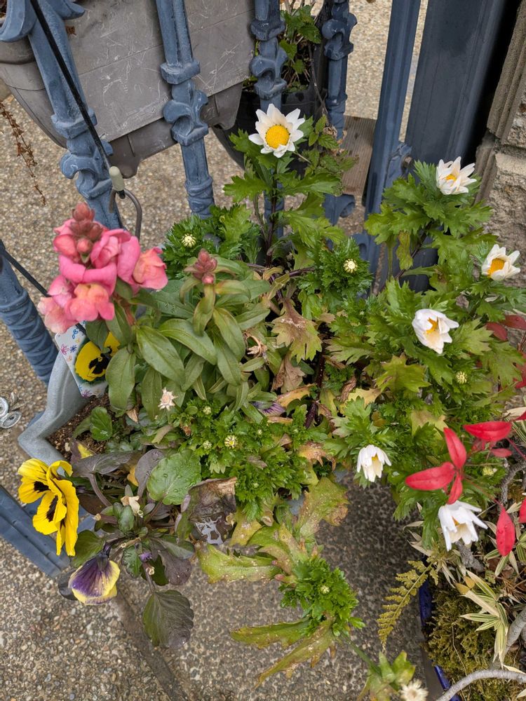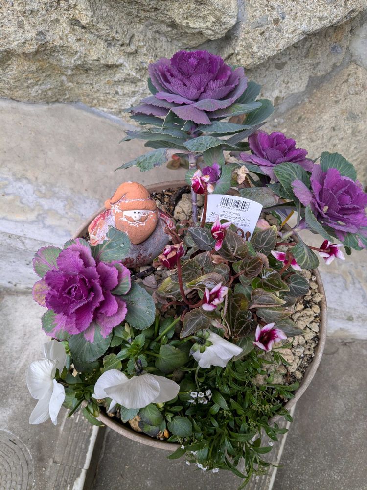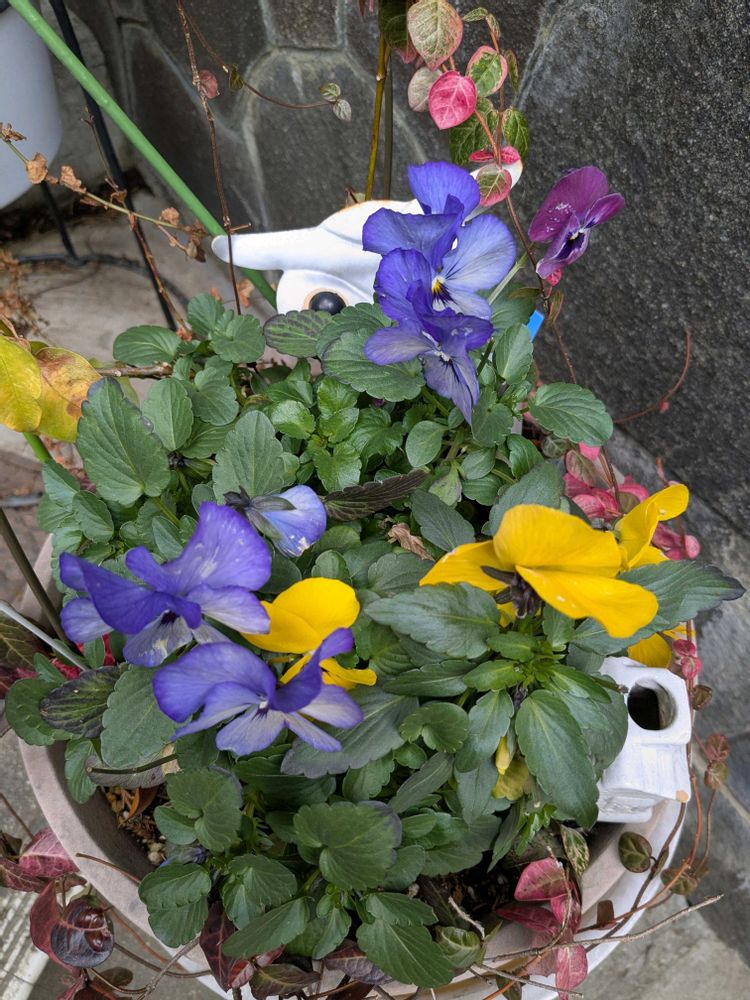 地植えの八重クリスマスローズや寄せ植え達は寒さにも負けずに頑張っているね💪😃