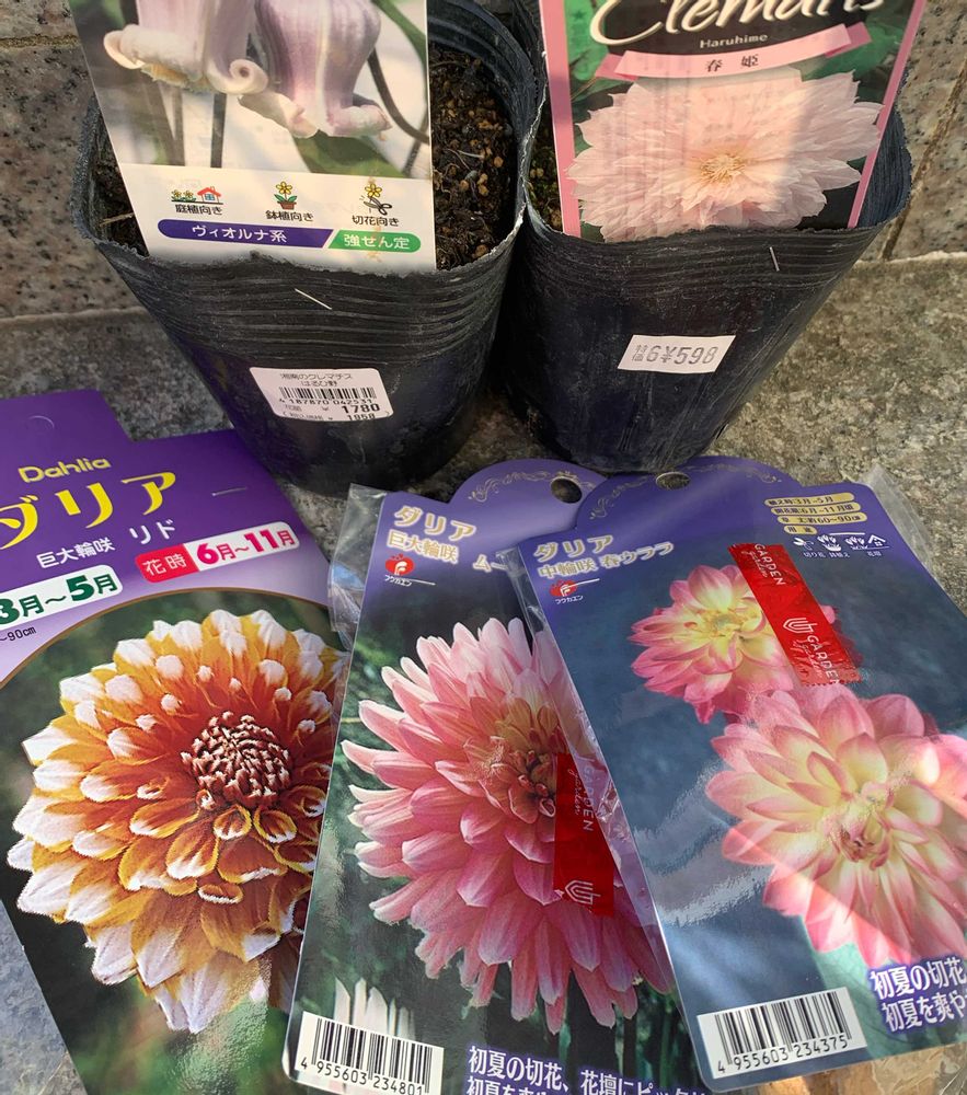 バラは今度こそダナヒュー買おうと思って行ったら無かったという😅でも、カタ落ちレア品種のエマハミルトンがあったので飛びつきました✨