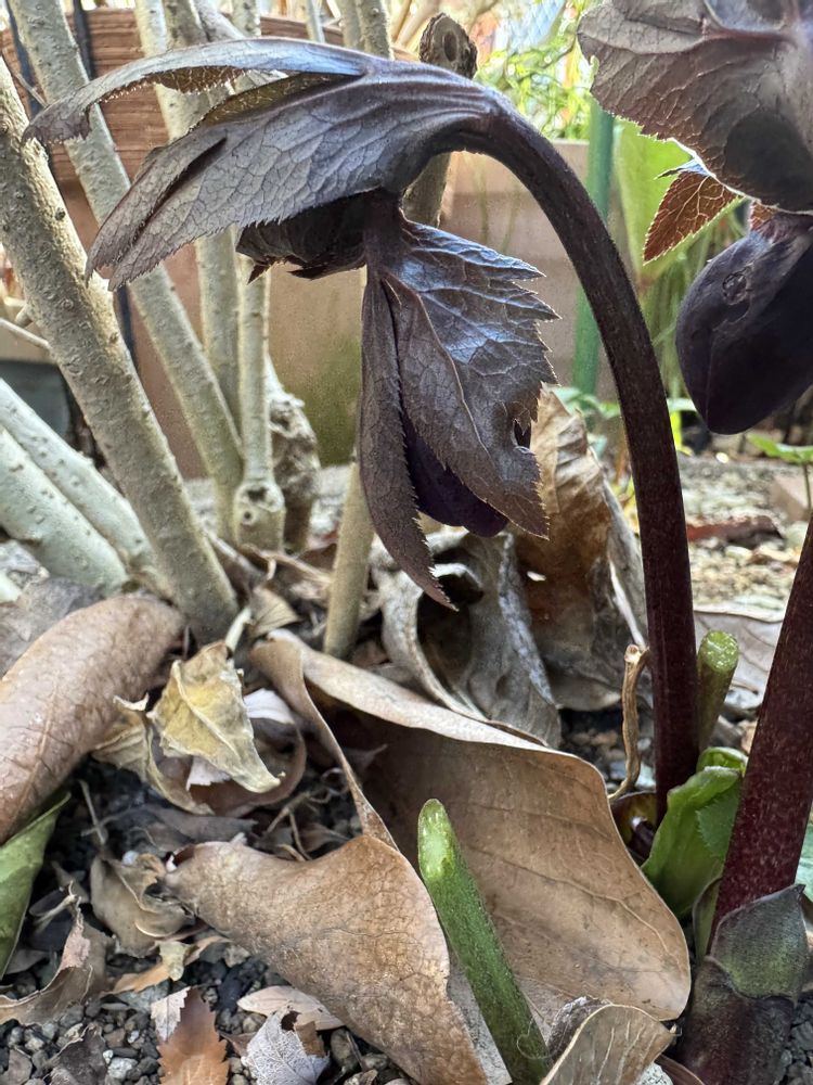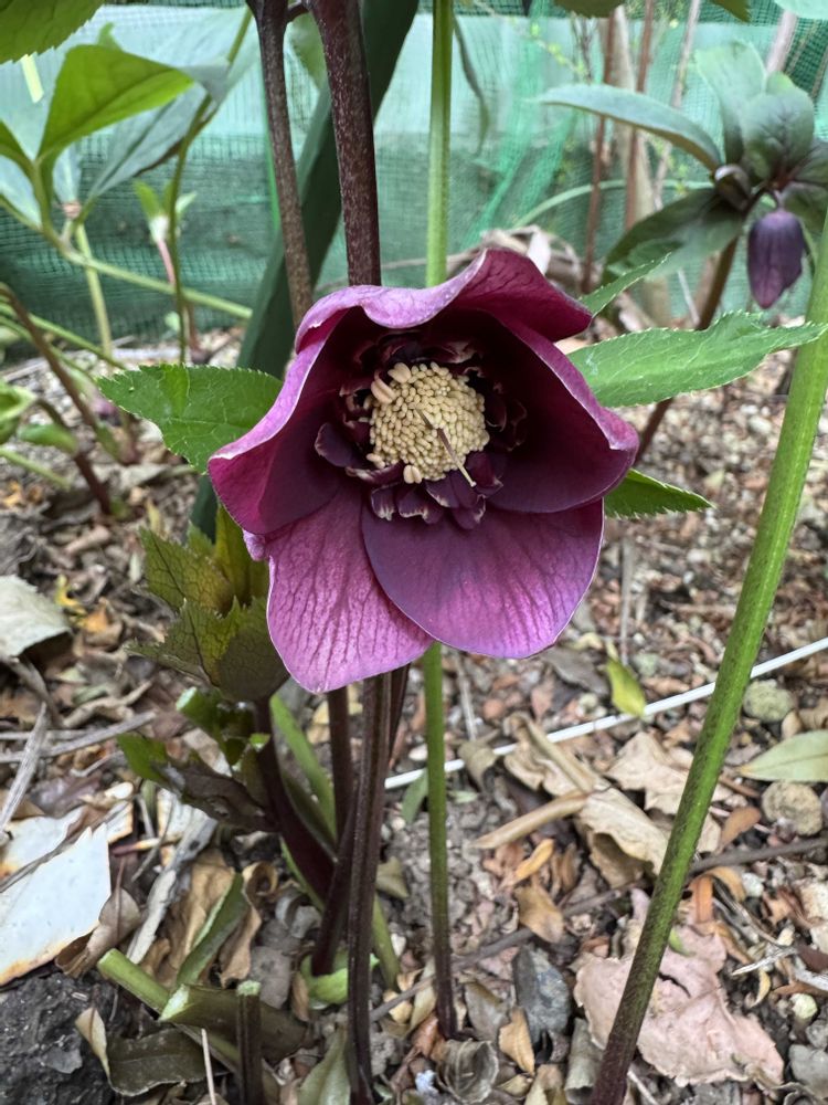 ②今年の我が家のクリスマスローズの開花第一号はうちで勝手に交配したセミダブル💜