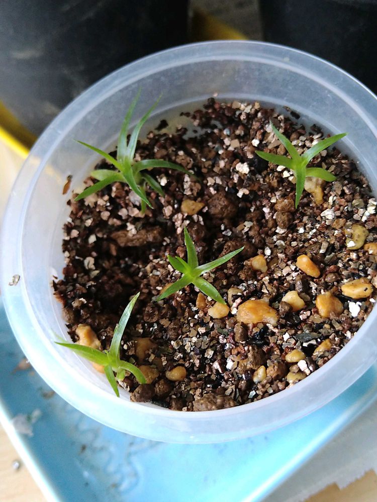 2024年3月22日に交配 2024年7月12日に結実した種を採取 2024年8月14日に種まき 2024年9月に発芽 その後、植え替えをして現在2025年7月に至る 今後の成長はアプリで記録 花が咲くまで継続