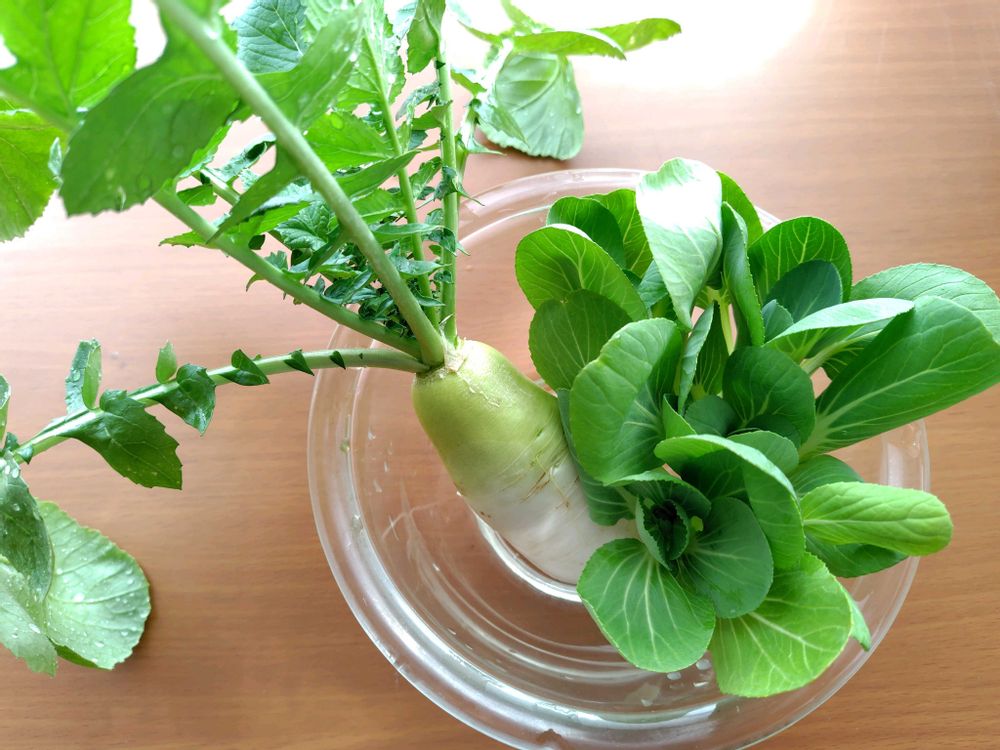 ベランダ栽培のミニ大根とミニチンゲン栽の収穫。100均のベビーリーフミックスも良く育ってます🌿😊