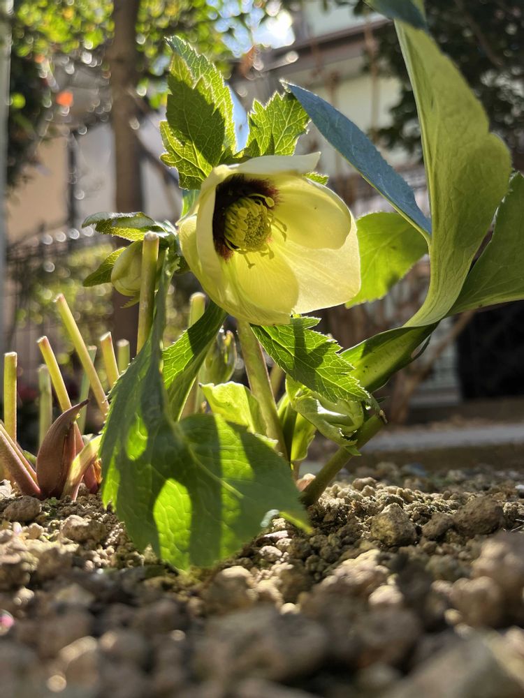 地際で咲くのは寒いからとのことだけど、すこーし花茎が伸びてきた😊