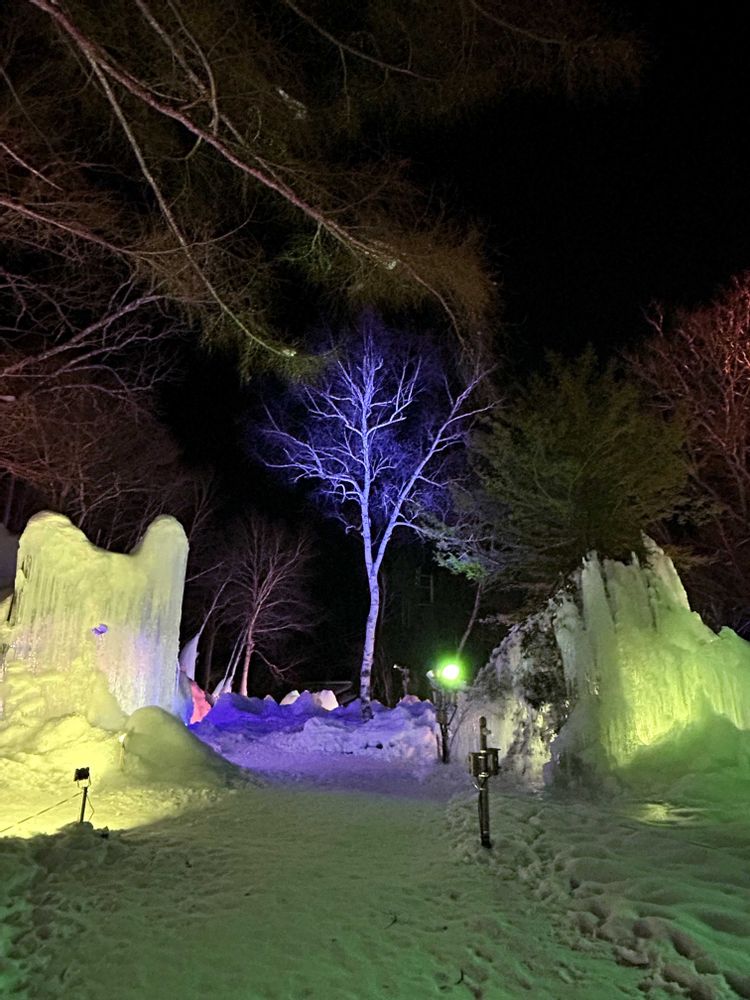 氷点下の森のライトアップ⤴️も、今月中で終わり。秋神温泉旅館♨️の宿泊者だけ、3月は特別ライトアップしてくれるそうです。もう少し、アップしますね🤗