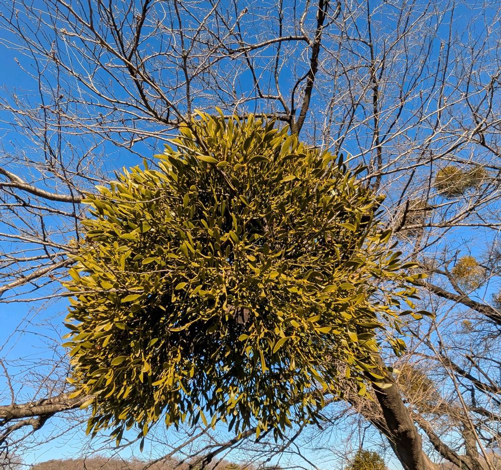 大きなヤドリギ 他の枝にも沢山のヤドリギがありますね🌳