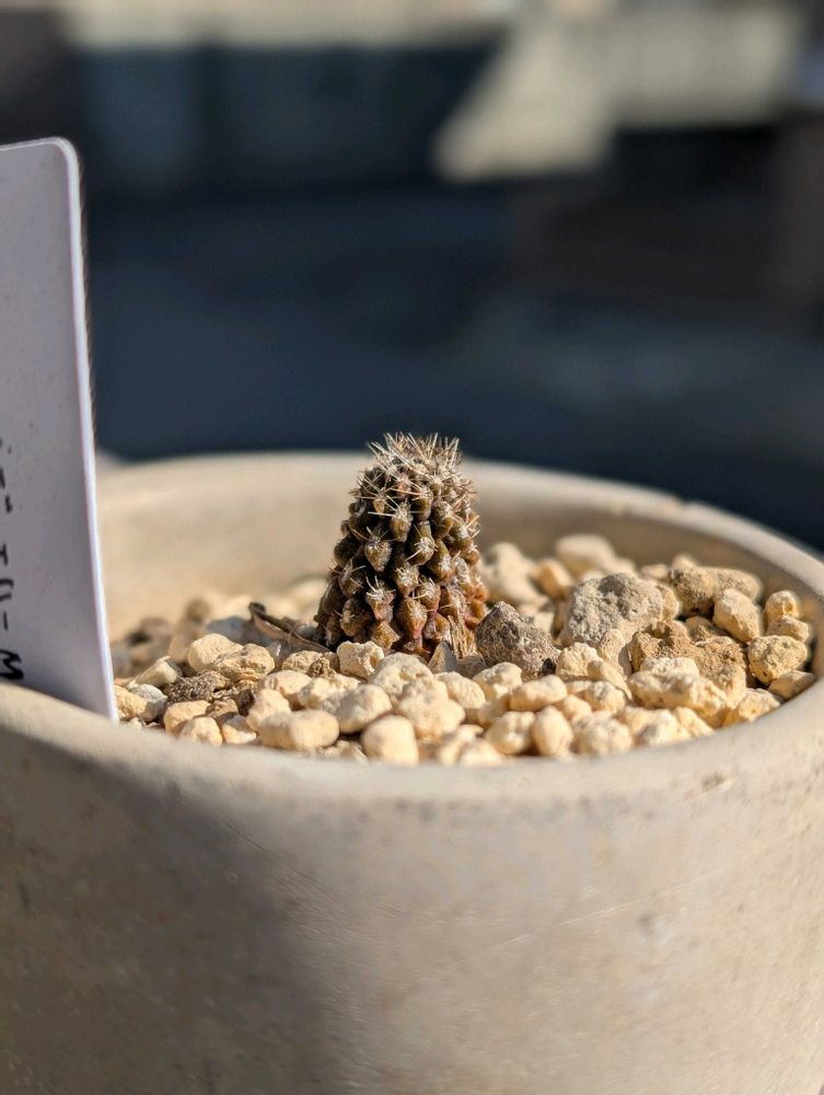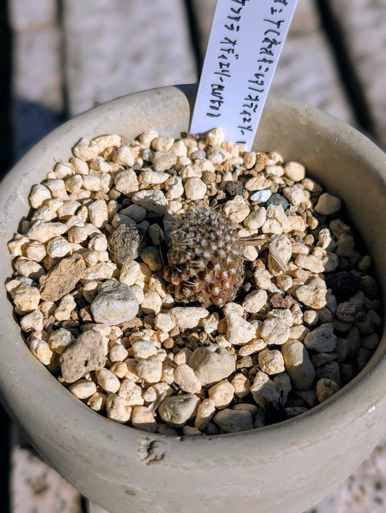 オディエリーもナピナに似た姿で、茶褐色の小さな球体に細かく短な刺、太い根(塊根)を持つサボテンで、深い鉢が必要です。