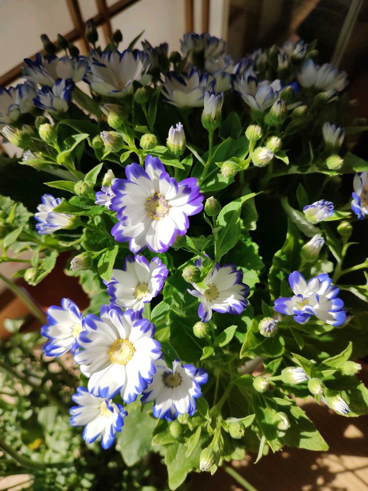 シネラリア、赤やピンク、紺?紫?…いろんな色があって、どれも可愛くて…でも、この白にブルーの縁取りがいちばん好きなんです(◕ᴗ◕✿)