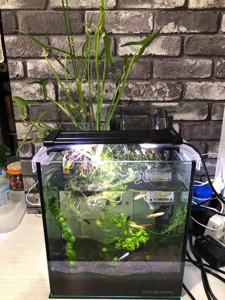 メダカ水槽に水上植物を加えてみました(^。^)