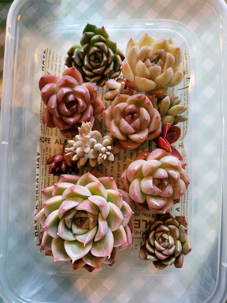 うちの多肉は種類少なくて、このカット苗は家に居ないコばかりかも🤔〜で、寄せ植えよりも先ずはお一人様で😊