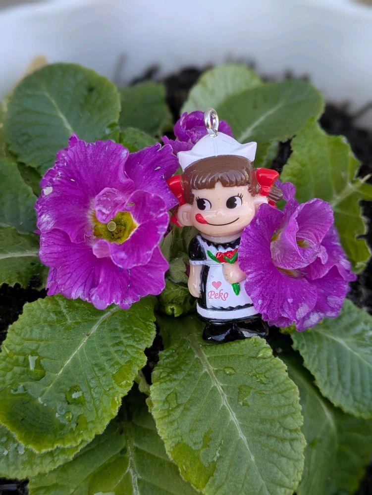 雪が溶けたお花にペコちゃんが遊びにきたよ🫢