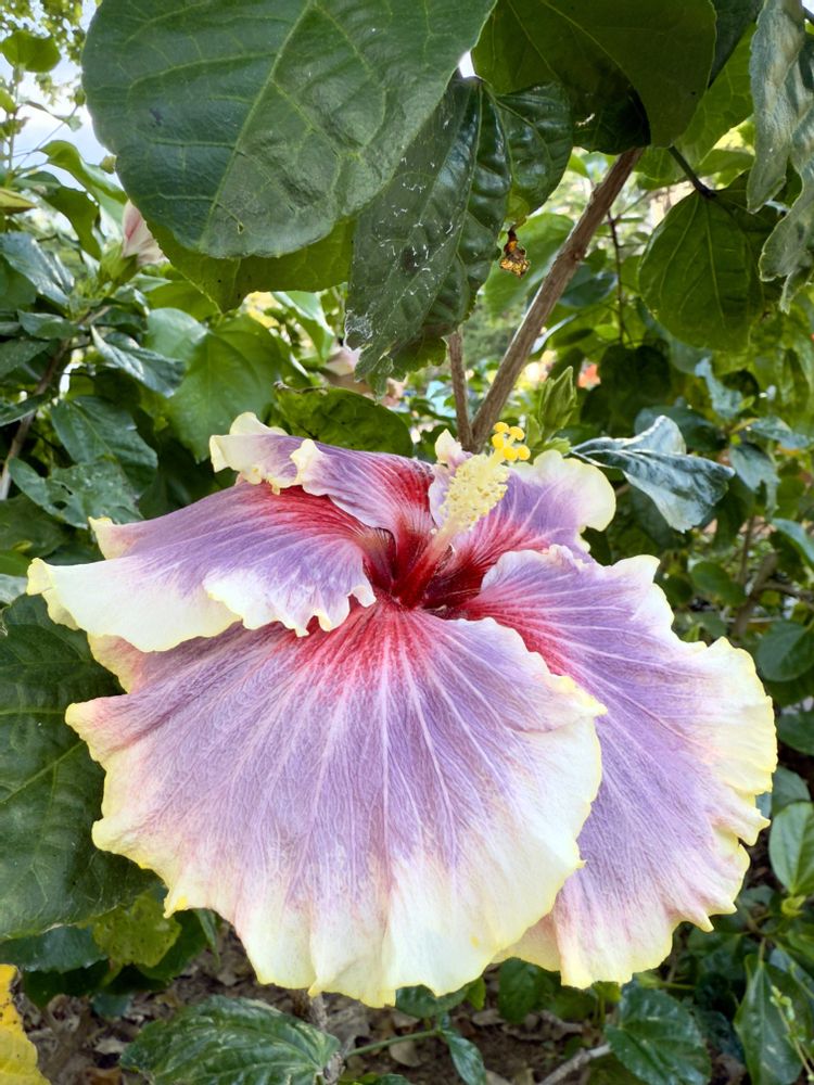 前回公園に行った時は、もう萎んでしまっていた白と薄紫のハイビスカス、やっと咲いてるところに出会いました〜😍💜🤍🩷