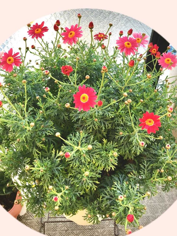 マーガレットは、昨年小さなハンギングで管理していて一気に鉢増しして心配だったけど立派な株になってくれました🌸