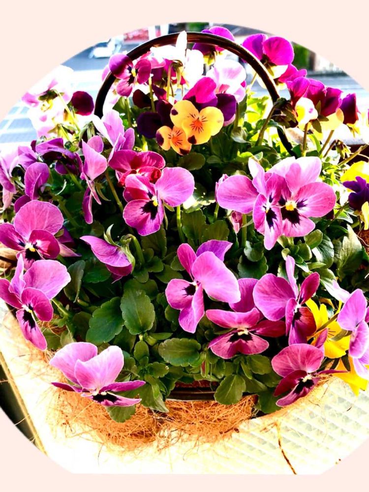 年末にお迎えした寄せ植えの花達がモリモリにお花が咲いてくれてます。