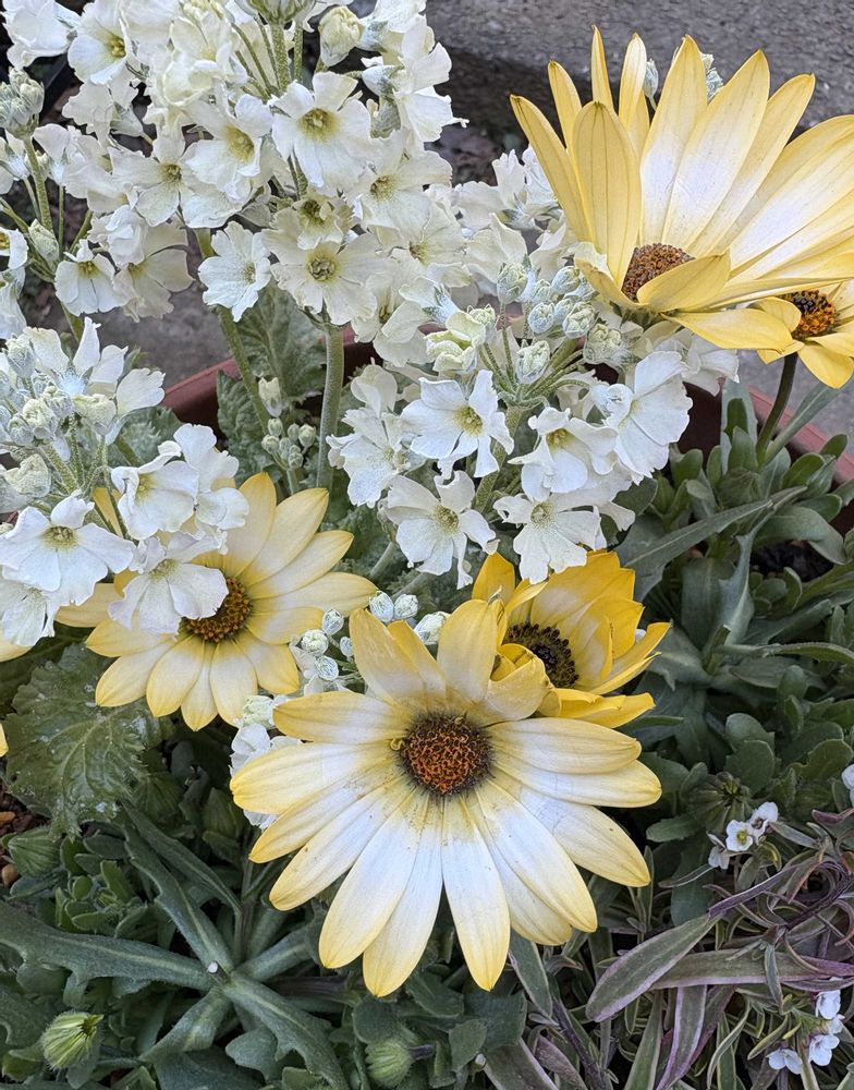 ぱあ〜っと気持ちまであかるくなるようなステキな寄植えですね💛🤍🌼✨