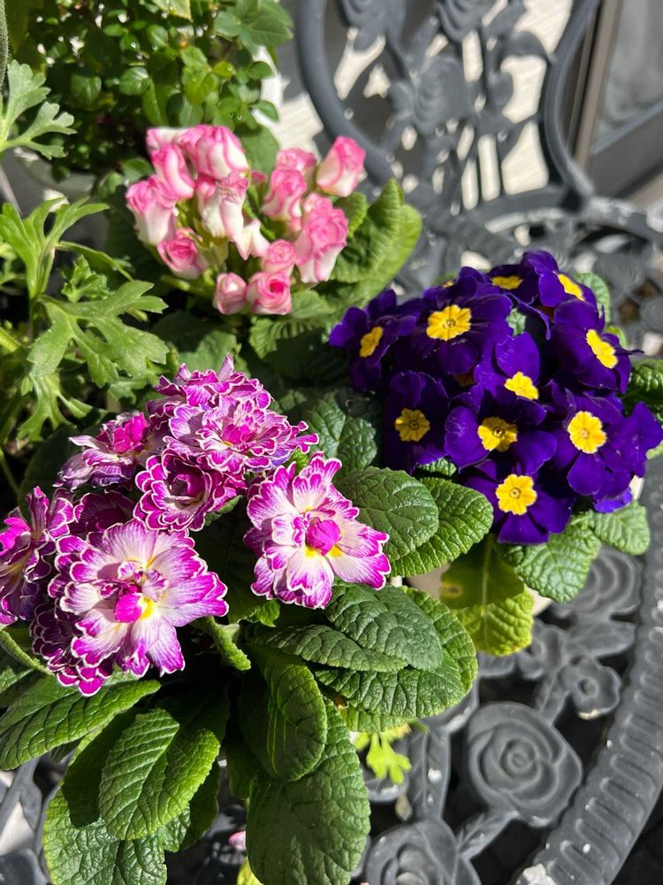 鉢からあふれて咲いてるプリムラ ジュリアン達