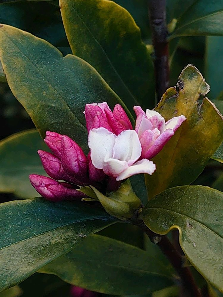 1️⃣2️⃣ジンチョウゲ咲き始めました😃🤍🩷この香り嬉しいですね😍 昨日の朝の出勤途中にて🌸