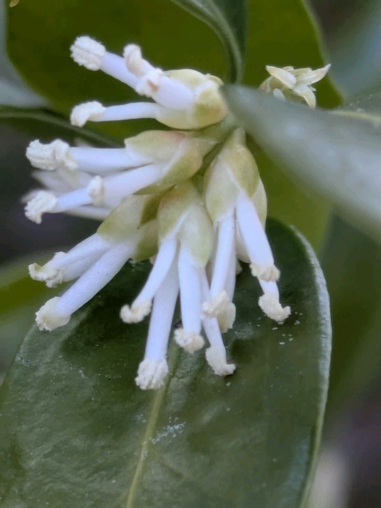 一方雌花はというと、柱頭が2裂するだけの小さな形をしていて、どちらも花弁がないのは、なるほどやはりツゲの仲間だ(๑・ิ◡・ิ๑)