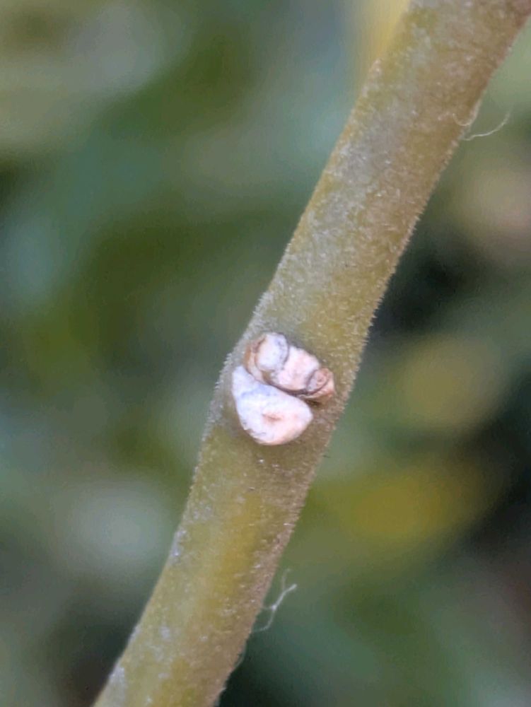 花粉が落ちるのを待つかのように雄花の基部に付くこともあれば、単独で茎から飛び出ているものもある➰